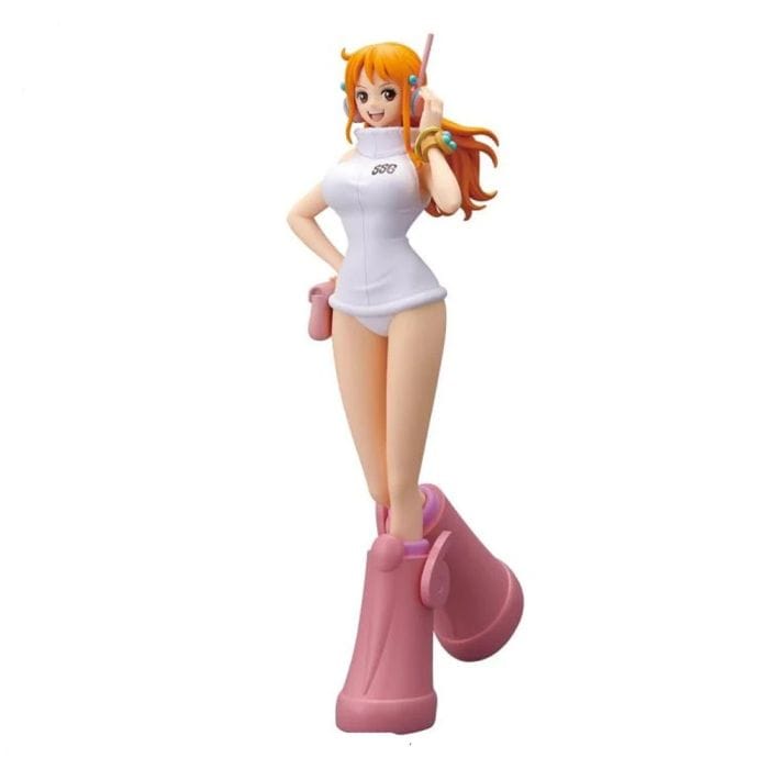La navegante más astuta del Sombrero de Paja vuelve a brillar en esta edición especial de la línea Glitter & Glamours de Banpresto, inspirada en el arco de Egghead Island de One Piece. Nami luce un nuevo atuendo estilizado que resalta su personalidad carismática, con una escultura impecable y acabados de alta calidad que la convierten en una figura imprescindible para los coleccionistas.