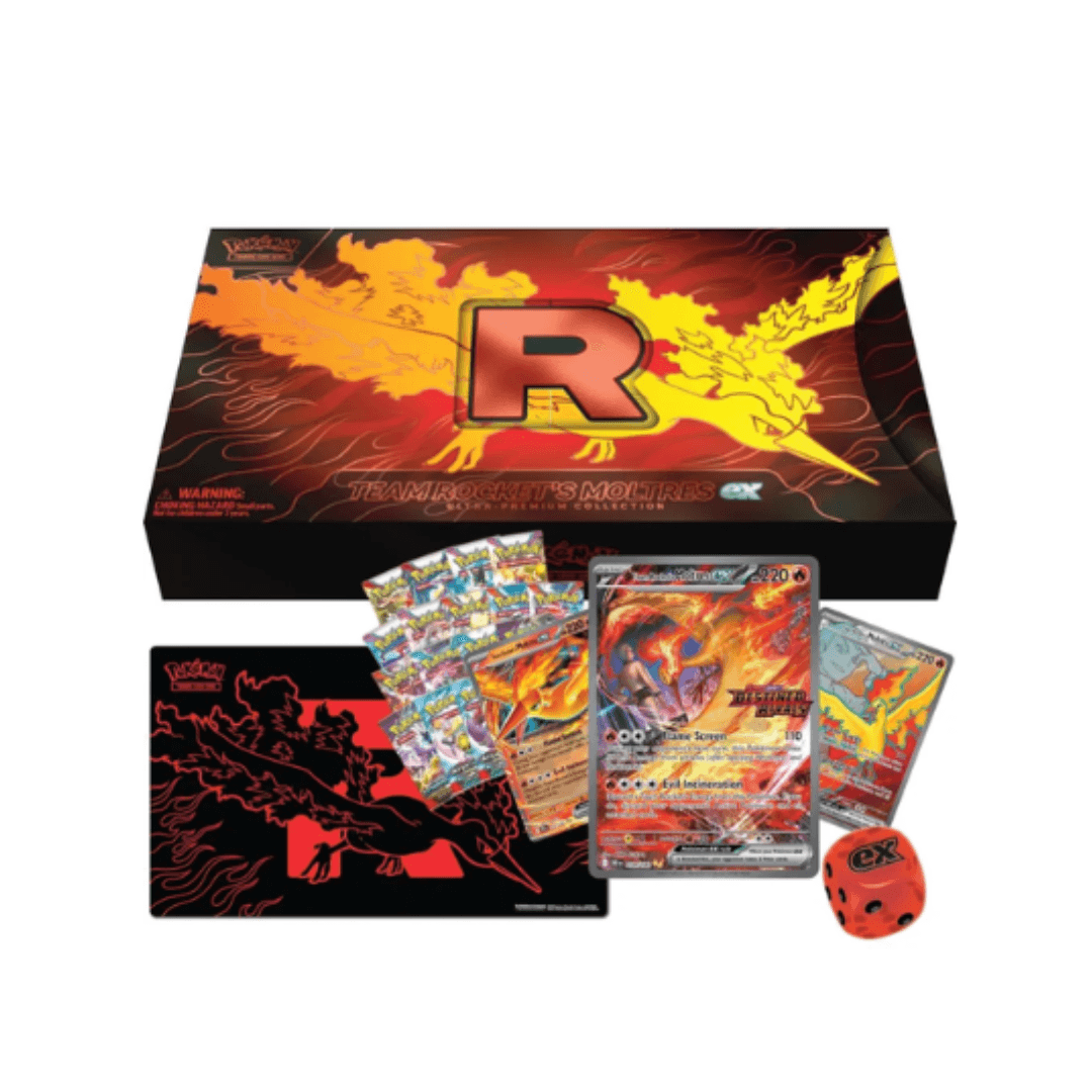 La Pokémon TCG: Ultra Premium Collection – Team Rocket’s Moltres es una edición de lujo creada para los verdaderos coleccionistas y jugadores que buscan poder, exclusividad y una estética imponente dentro del Pokémon Trading Card Game. Inspirada en el legendario Pokémon de fuego bajo el control del Equipo Rocket, esta colección representa la ambición, el dominio y la estrategia sin concesiones.