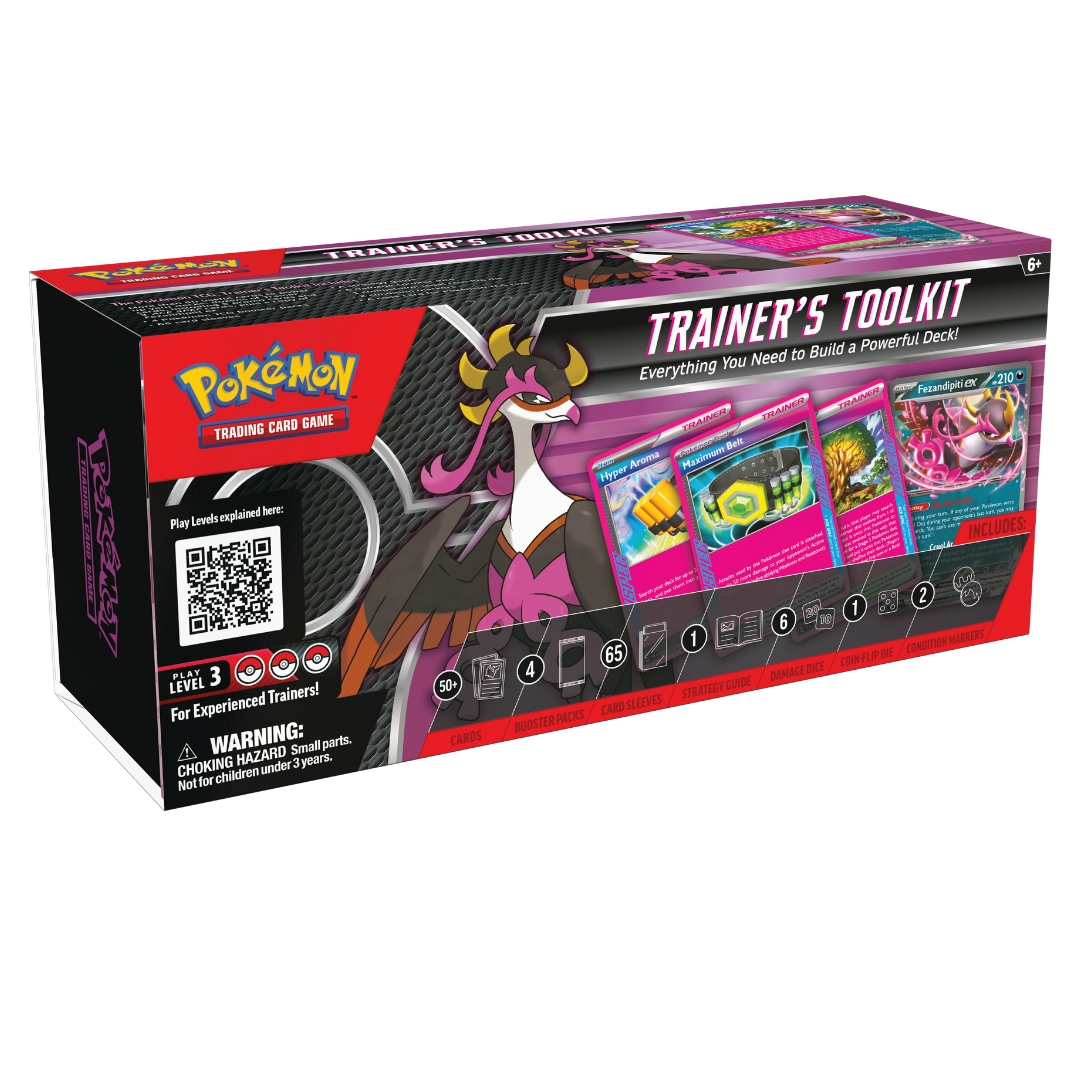 Compra la edición Pokémon TCG: Trainer’s Toolkit (2025) con Fezandipiti ex, más de 50 cartas jugables, 4 sobres, 65 fundas y guía de estrategia. Ideal para construir mazos y coleccionar.