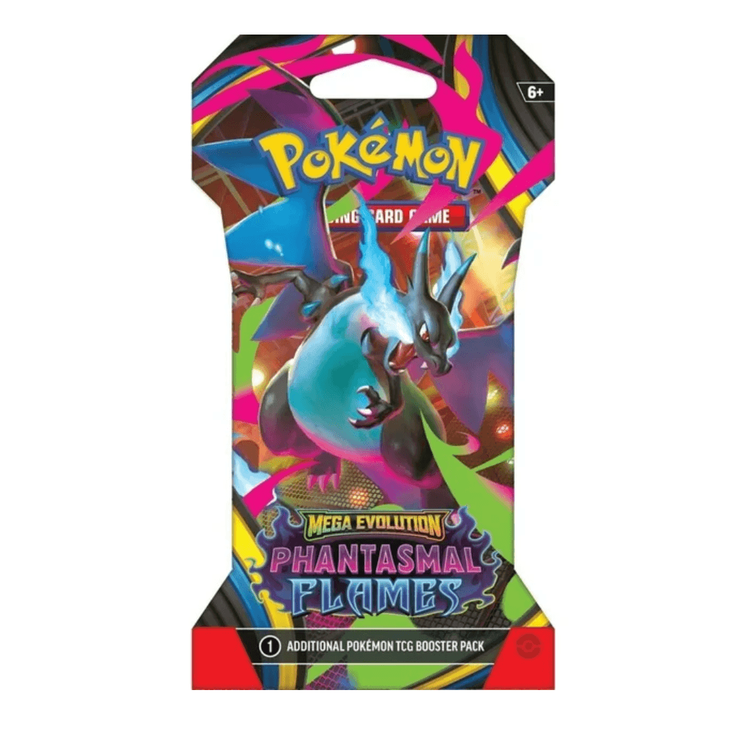 Phantasmal Flames combina la esencia del tipo Fantasma y Fuego, ofreciendo ilustraciones espectaculares, nuevas habilidades y cartas de Entrenador con mecánicas renovadas. Cada sobre es una oportunidad para mejorar tus mazos, descubrir cartas raras y fortalecer tu colección con contenido exclusivo solo disponible en esta expansión.