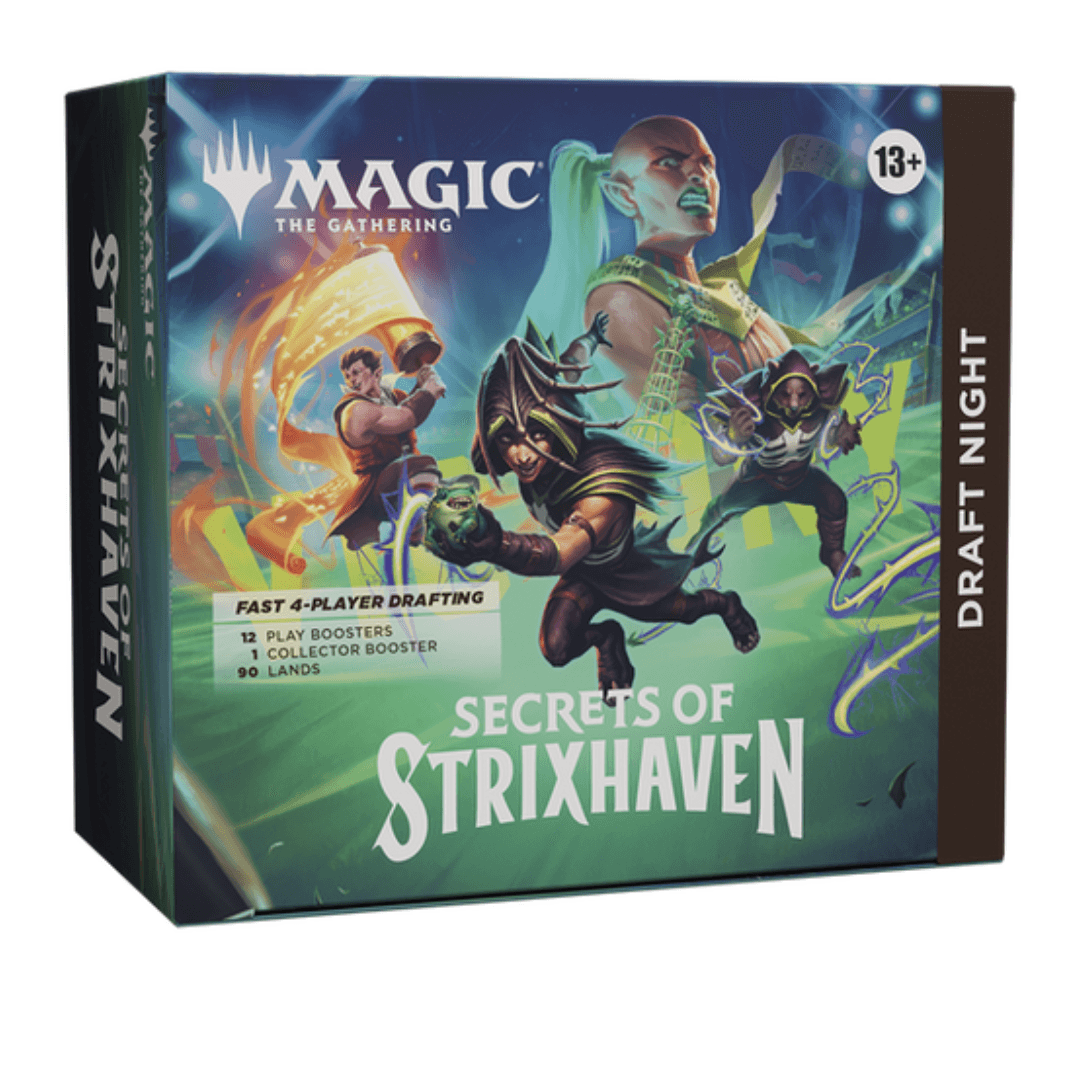 Magic The Gathering Secrets of Strixhaven Draft Night, ideal para jugar en grupo, hacer draft y vivir partidas estratégicas con amigos.