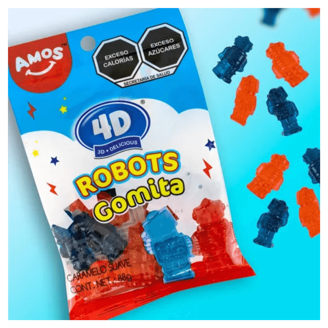 Las AMOS Robot Gummy 4D son una excelente opción para quienes aman las gomitas frutales, dulces con formas divertidas y snacks importados con diseños llamativos.
