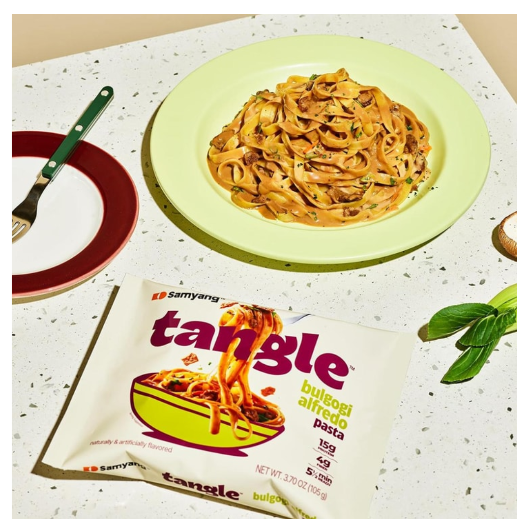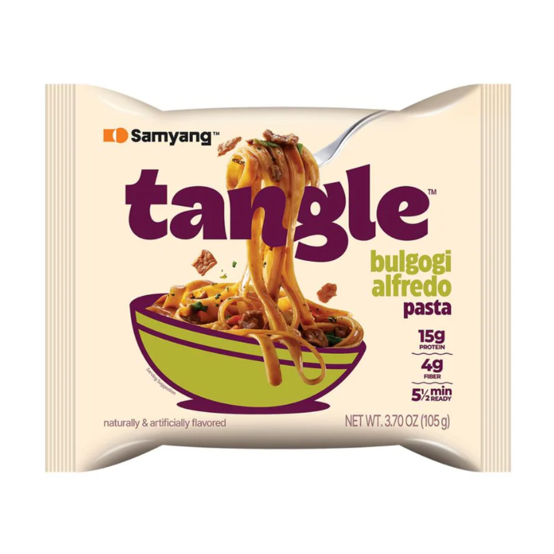 Samyang Tangle Bulgogi Alfredo Pasta, noodles coreanos con salsa cremosa estilo Alfredo y sabor bulgogi. Disponible ahora en Ziggytoys.